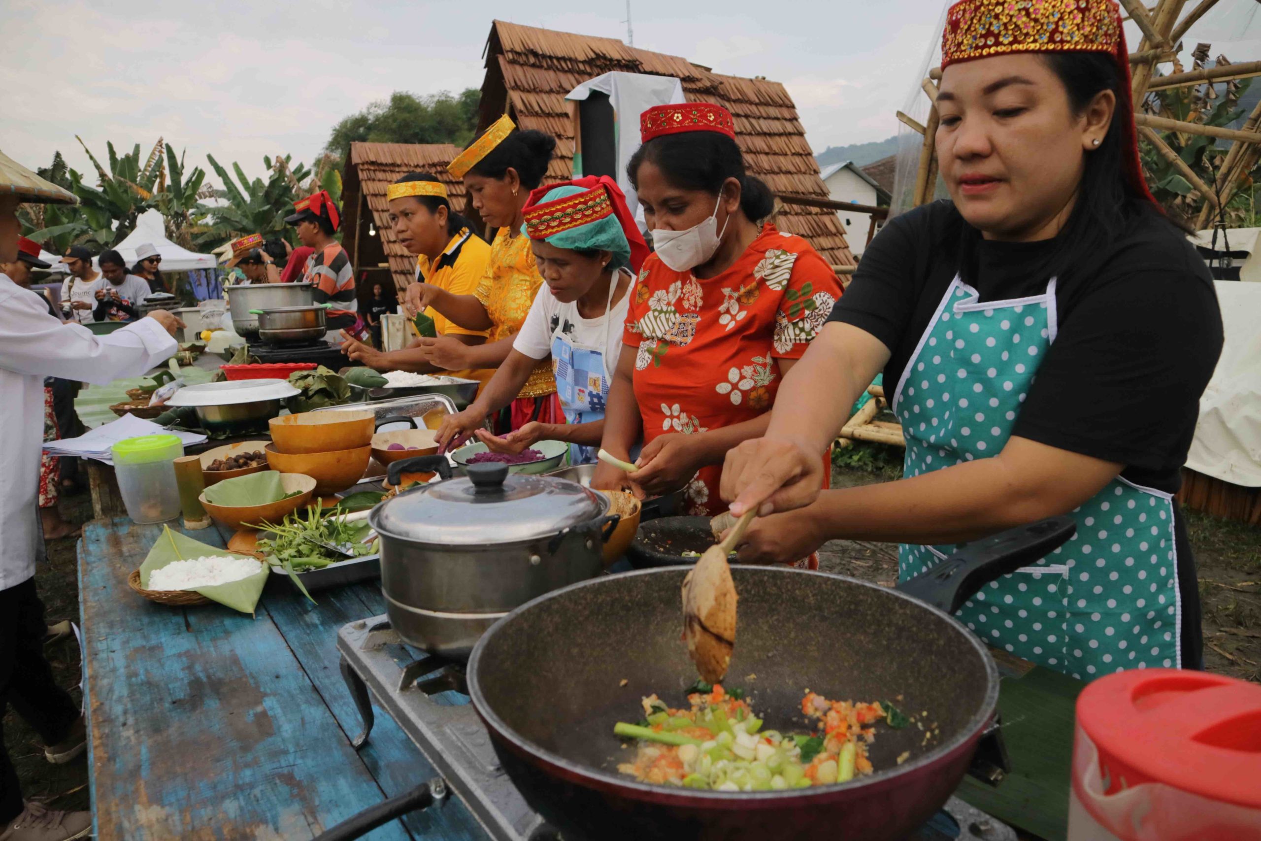 Moapu ( memasak bersama ) kuliner lokal di Festival Mosintuwu oleh ibu-ibu dari desa-desa. Foto : Dok.Mosintuwu